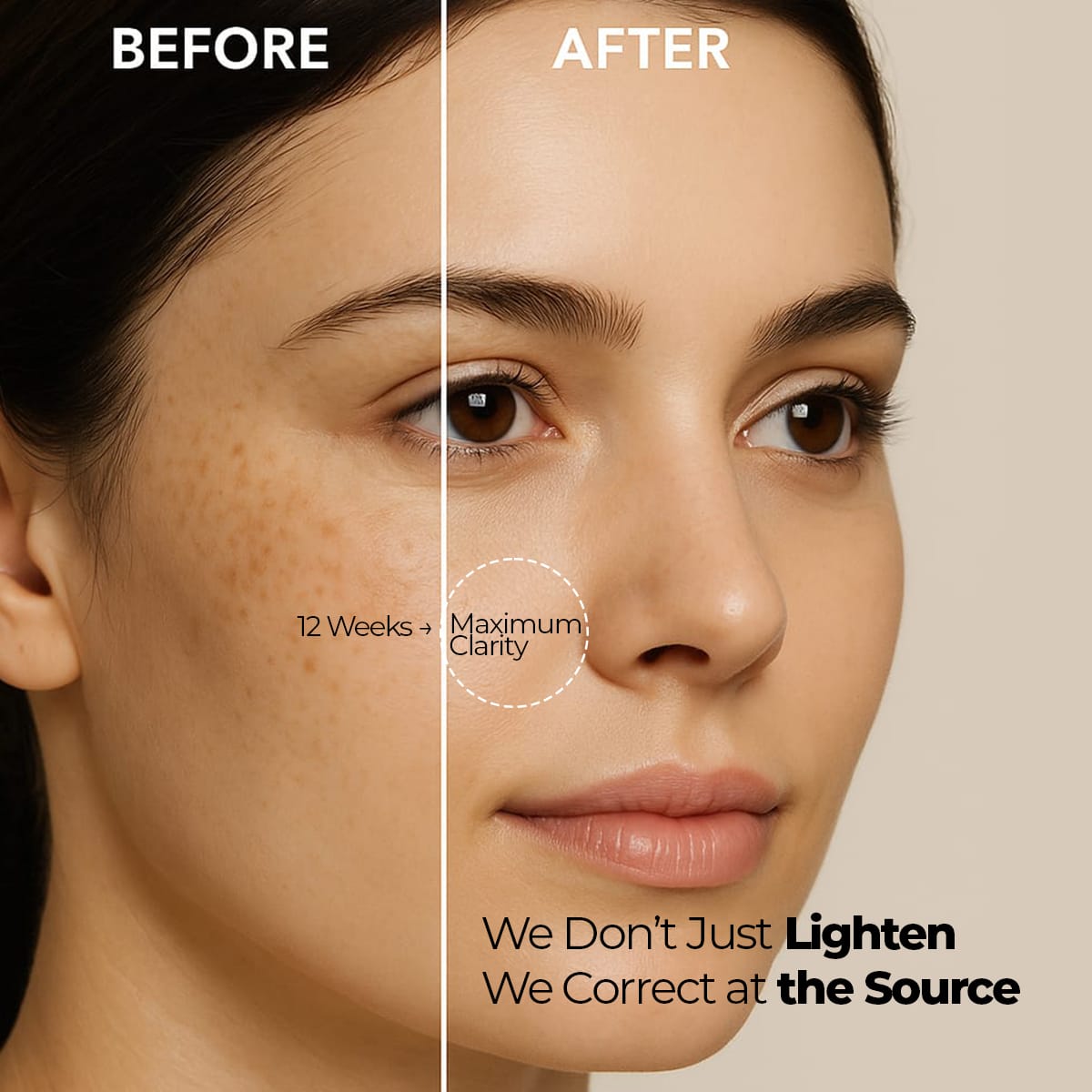 More Than Lightening: Many products simply bleach the surface. Our serum is different. It’s formulated with powerful, clinically supported ingredients like Tranexamic Acid, Butylresorcinol, and Niacinamide that target the root cause of melanin overproduction.