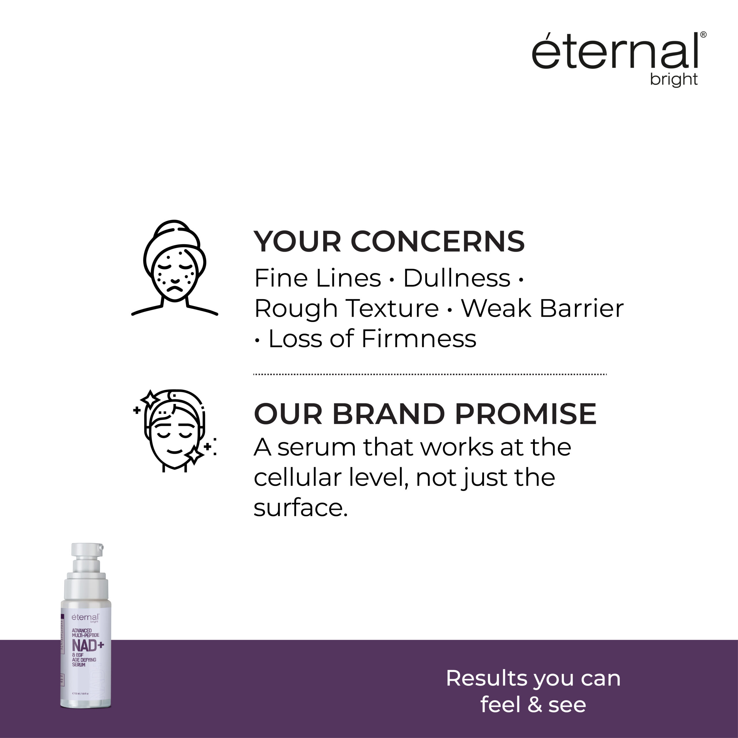 Eternal Bright NAD+ Serum addresses the cause, not just the symptoms.