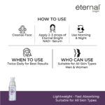 Cleanse your face with a gentle face wash.Apply 2–3 drops of Eternal Bright NAD+ Serum to face and neck.